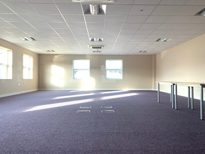 A ground floor open plan office built to a good specification including suspended ceiling with IT lighting, comfort heating and cooling, raised floors with a small number of floor IT boxes. Fully secure and self-contained with its own kitchen. Shared use of toilet facilities including disabled. Lobby area and main access to the front.