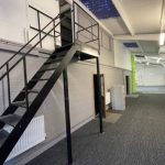 Inside the unit offers warehouse floor space and offices with storage over.