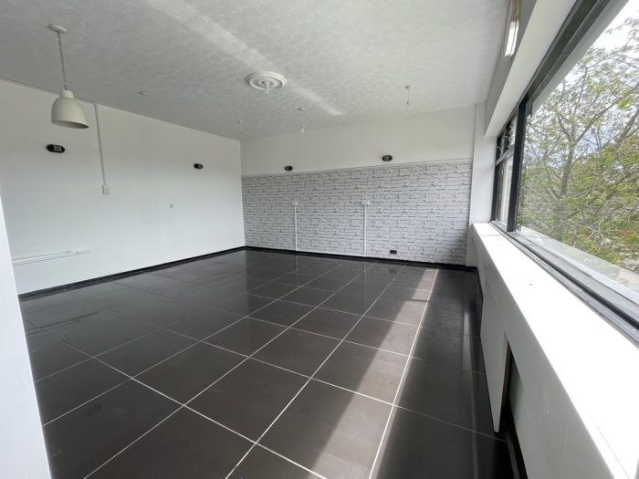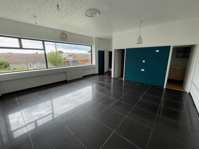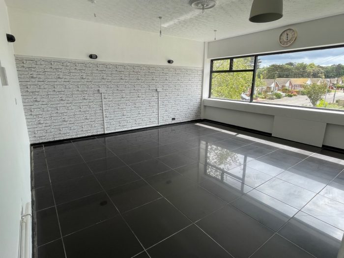The first floor provides two rooms; one being the former salon with tiled flooring and the other a reception area with laminate wooden flooring. The larger room is light and bright with large windows to the front. Kitchen and toilet facilities are also provided.