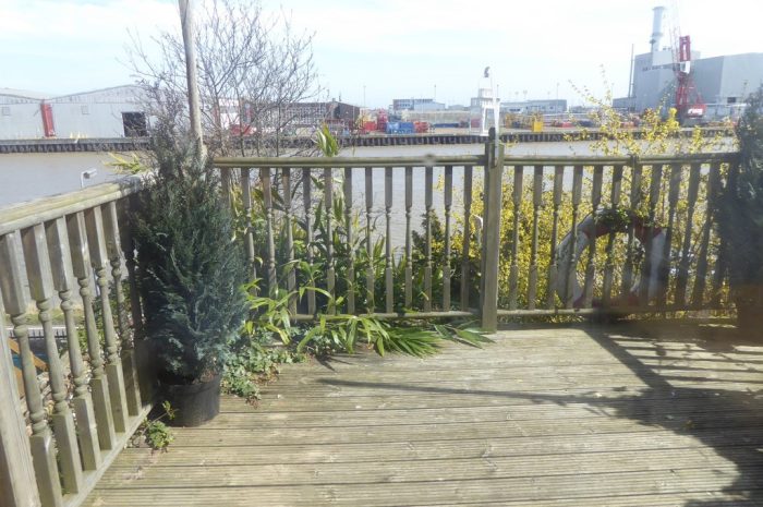 OUTSIDE There is a decking area immediately outside the kitchen doors providing views over the river with steps down leading into an enclosed garden area which is mainly filled with shrubs and plants and further steps to gate providing access onto Riverside Road.