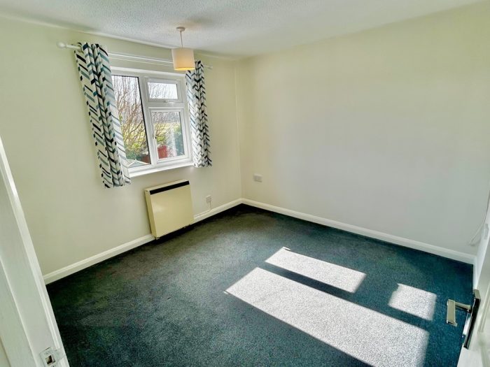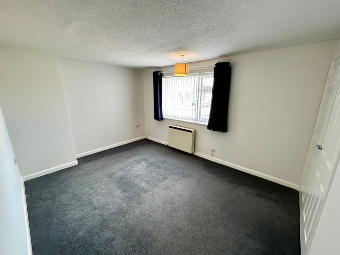 BEDROOM 1 13' 5" x 10' 2" (4.1m x 3.1m) carpet; storage heater; UPVC double glazed window to front with newly fitted blind; built in storage cupboard/wardrobe.