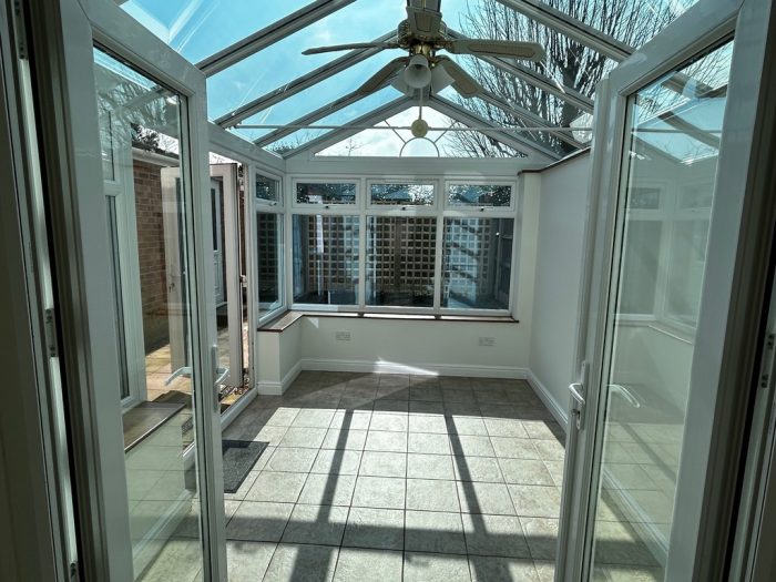 CONSERVATORY 11' 5" x 8' 6" (3.5m x 2.6m) tiled floor; UPVC double glazed door to side leading onto garden; under floor heating; double glazed windows and roof.