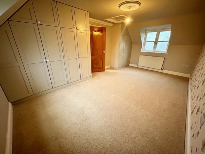 BEDROOM 3 17' 11" x 11' 3" (5.48m x 3.45m) fitted carpet; radiator; good range of fitted wardrobes; dual aspect UPVC windows to front and rear.