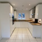 KITCHEN / DINING ROOM 16' 9" x 9' 2" (5.11m x 2.79m) tiled flooring; radiator; window to front and window and door to rear; range of fitted high gloss units with wood effect laminate worktop over; double electric oven; gas hob with extractor over; stainless steel inset sink; integral washer/dryer.