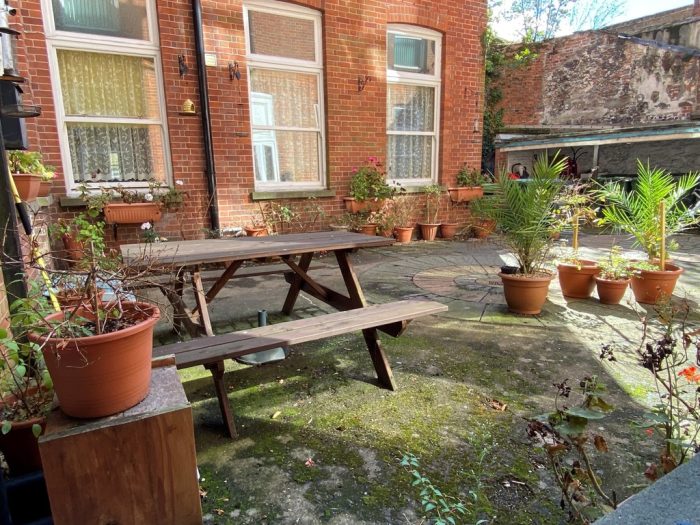 LOUNGE 11' 9" x 13' 9" (3.6m x 4.2m) carpet; wall mounted storage heater; two sash windows overlooking the pretty communal courtyard garden.