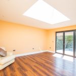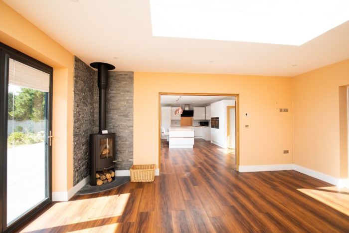 SUN ROOM Karndean flooring; freestanding log burner to the corner; bifolding doors to patio and garden beyond; skylight to ceiling; door to Garage.