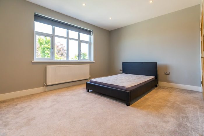 BEDROOM 4 carpet; radiator; double glazed window to front with distance sea views; triple wardrobe, double bed and chest of drawers in situ.