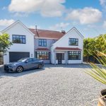 The property is accessed via a very large in/out driveway providing parking for numerous vehicles with access to garage with electric door and canopied front entrance with outside lighting.