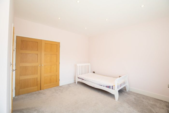OUTSIDE To the rear of the property is a large patio area immediately outside the bifolding rear doors with uplighters in the paving and the sides of the steps and downlights in the canopy over the rear of the property. Large grassed area with mature borders to side providing a private enclosed garden with side access gate with log store and bin area. Outside building for tenant's use. (Agent's Note: Please note that the large garden shed has been retained by the Landlord.)