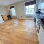 OPEN PLAN LOUNGE / KITCHEN 19' 7" x 13' 11" (5.99m x 4.25m) wood flooring; downlights and wall mounted feature lights; two very large UPVC double glazed sash windows overlooking Market Place; newly fitted fully integrated kitchen with Samsung electric cooker, gas hob, extractor fan, washing machine/dryer; full length integrated fridge; granite worktop; double sink unit; wall units and Nest thermostat control.
