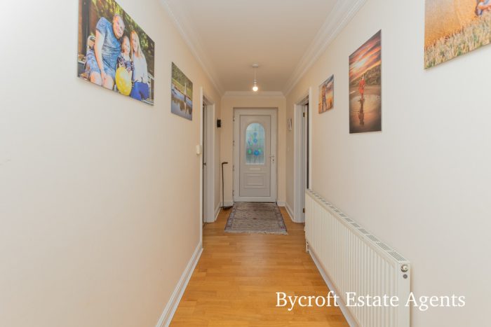 ENTRANCE HALL 19' 3" x 4' 5" (5.87m x 1.37m) wooden floor; UPVC double glazed door to front aspect; radiator; carpeted stairs to first floor.