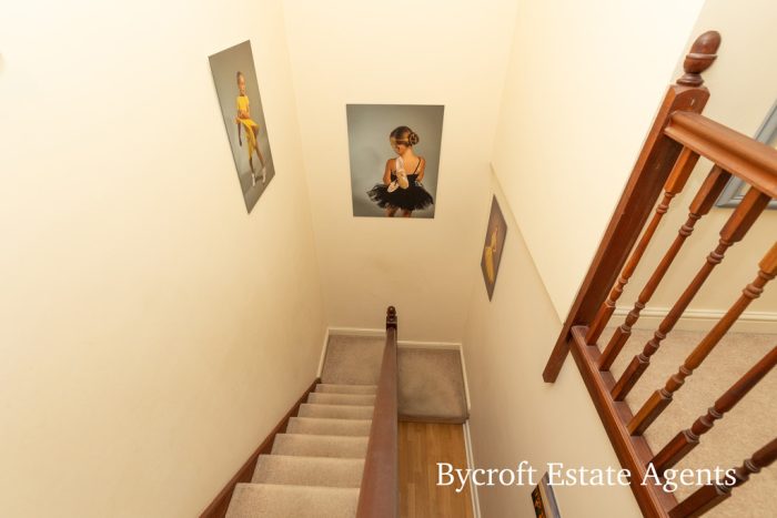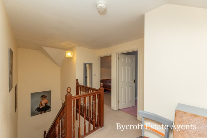 FIRST FLOOR LANDING carpeted; spacious storage cupboard with hanging rails; further storage cupboard with shelf; loft access.