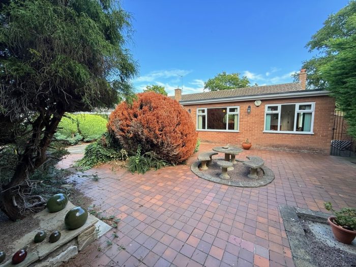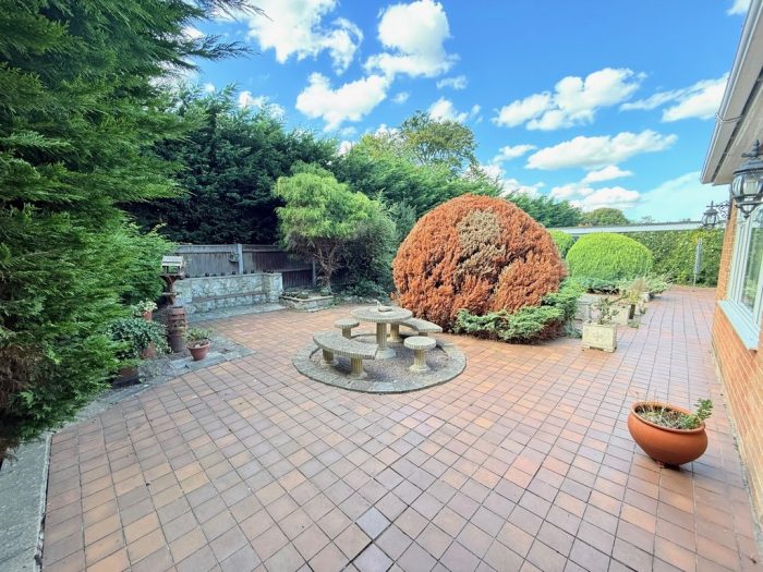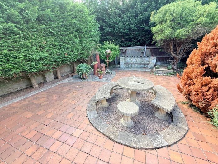OUTSIDE: The property is positioned in a very generous sized plot. To the front there is a large driveway providing parking for several vehicles to the side and front, the driveway leads up to the garage with electric roller shutter door to the side of which is the oil tank for the heating system, entrance can be found to the left side of the driveway with brick weave pathway leading up to the front door and around the front of the property into a side access gate. There are mature bushes and shrubs within a low maintenance front garden area. To the rear is a good sized enclosed low maintenance garden which is mainly tiled with many attractive features to include a concrete seating and table area; brick seating area, many mature bushes and shrubs, several concrete planters; rotary airer; waterbutt and hose; several outside lights. The side access has a wrought iron gate leading down the side of the bungalow with a covered area which would make an ideal potting area with a gate that leads onto the front of the property.