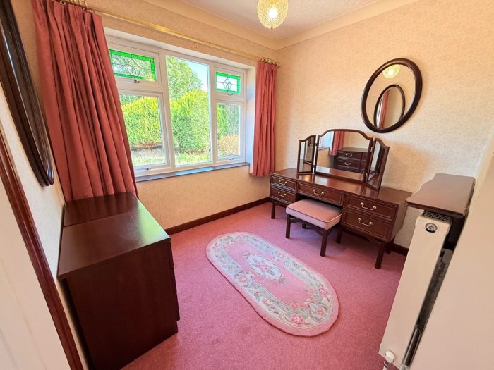 DRESSING ROOM: 8' 6" x 7' 2" (2.6m x 2.2m) carpet; radiator; double glazed window to front with curtain pole and curtains (Agents note: range of matching mahogany furniture consisting of dressing table with stool and mirror; 2 matching 3 drawer units which can be left if required). Door leading to;