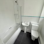 BATHROOM 6' 10" x 5' 4" (2.10m x 1.63m) tiled floor; white suite comprising of bath with shower over and screen to side; hand wash basin; low level wc; double glazed window to side; extractor fan.