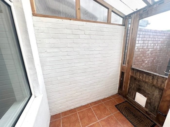 UTILITY AREA tiled floor; polycarbonate roof over; wooden door to rear.