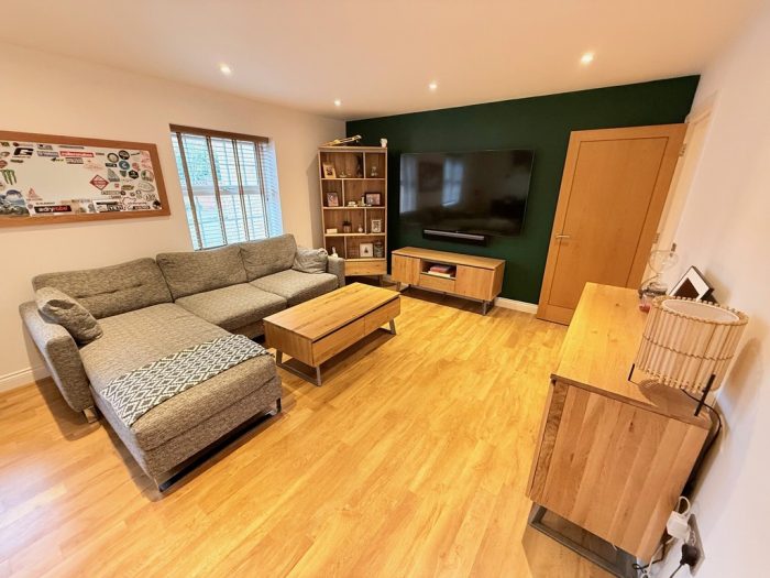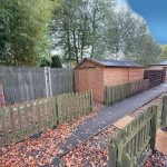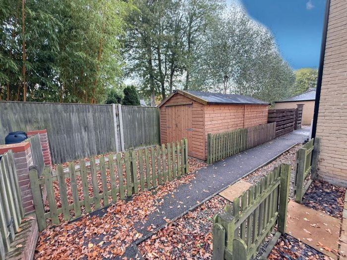 OUTSIDE To the front of the property there is a driveway for one vehicle in front of the garage with electric roller door, power and lighting, eaves storage, outside electric charging point for car. Garden area immediately behind the property with patio and slate chippings, extra area to right hand side of this with a generous sized shed 5'x2'5" with power and lighting inside.