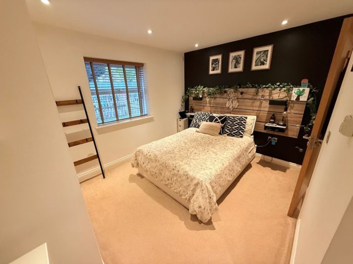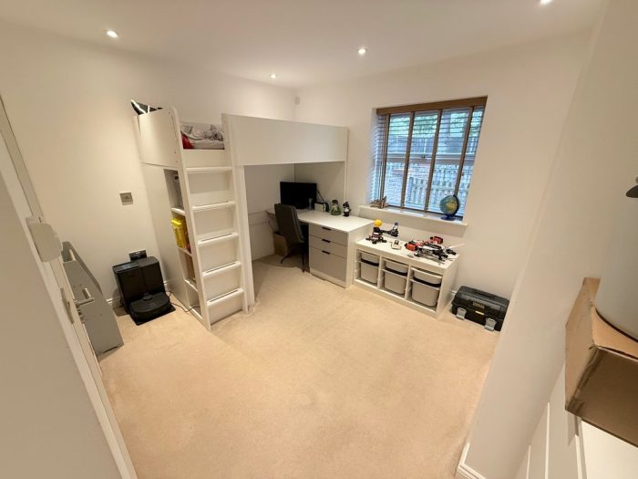 BEDROOM 2 12' 5" x 9' 2" (3.8m x 2.8m) including in built-in wardrobe; carpet with under floor heating; double-glazed window to rear with electric blinds; door to: