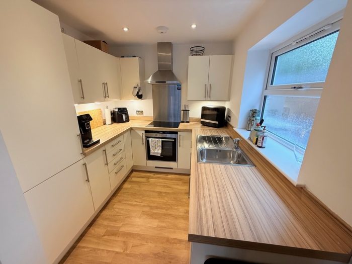 OPEN PLAN LOUNGE DINING KITCHEN LOUNGE area 6'3"x 4'0 - LVT flooring with under floor heating; two double-glazed window to front aspect with electric fitted blinds controlled by remote.
