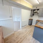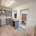 KITCHEN 13' 5" x 5' 10" (4.1m x 1.8m) brand new grey wall and base units with wood effect work surface over; stainless steel sink and drainer; double-glazed windows to side and rear aspects; breakfast bar area; wall mounted boiler; wood effect vinyl flooring; double-glazed door to rear; space for electric oven with extractor hood over; space for washing machine; additional high level storage cupboards.