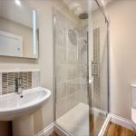 SHOWER ROOM 5' 8" x 4' 10" (1.73m x 1.47m) fitted with a white suite comprising of a pedestal wash hand basin with mixer tap; low level wc; walk in shower cubicle with wall mounted shower unit with hand and soaker attachments; tiled splashbacks; extractor fan; electric mirror; heated towel rail radiator.