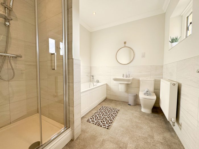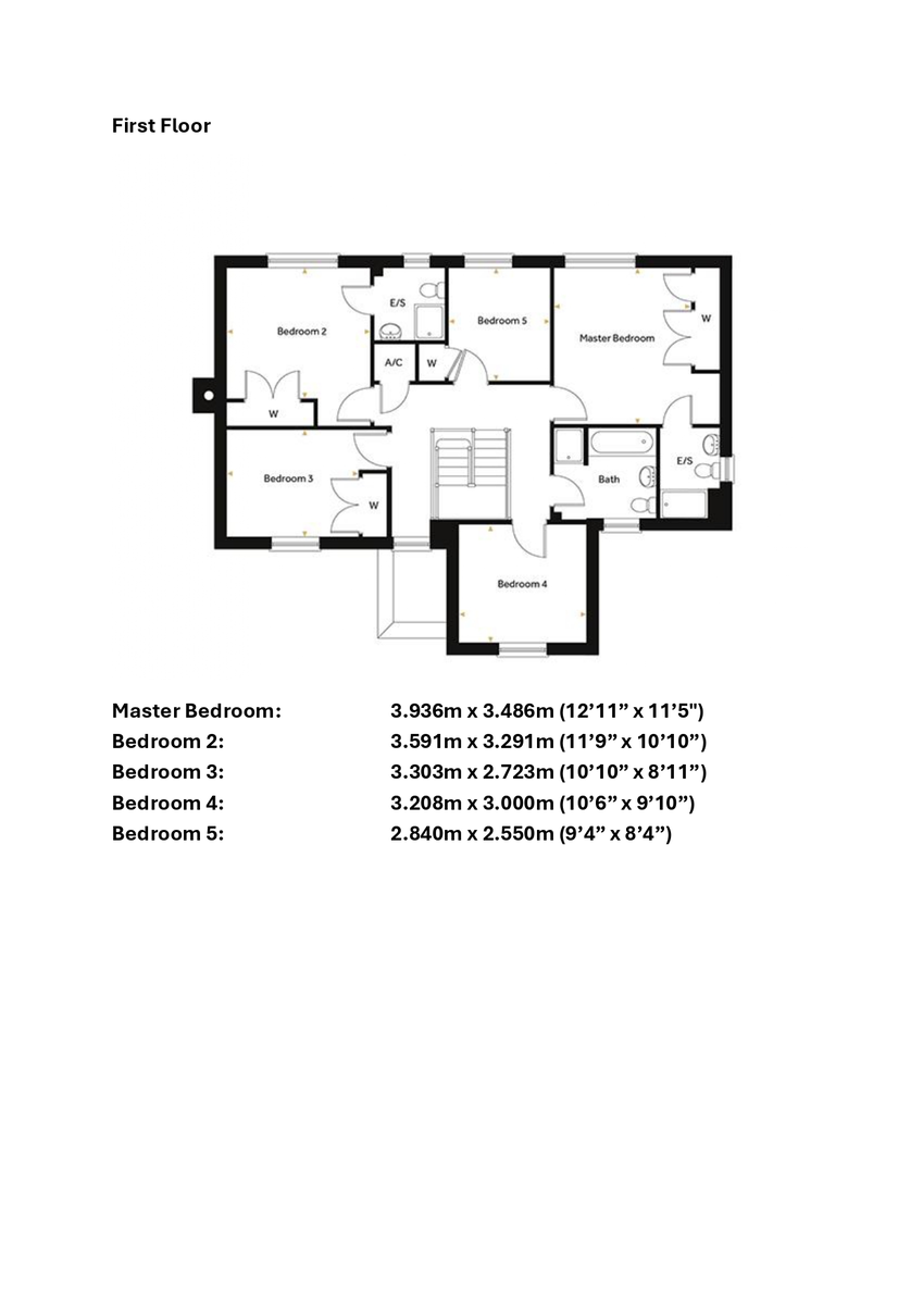 Upstairs, five spacious bedrooms provide ample accommodation, including two with luxurious en-suite bathrooms and three with built-in wardrobes. The family bathroom, en-suites, utility, and W/C are all enhanced with stylish downlighting, underscoring the home's attention to detail and quality finishes.