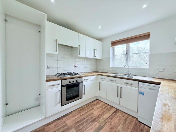 KITCHEN BREAKFAST ROOM 10' 3" x 8' 2" (3.12m x 2.49m) worktop/breakfast bar, range of base cupboards and drawers, built-in oven with four ring hob, space for upright fridge freezer and dishwasher, 1½ bowl sink with mixer tap, range of wall units, radiator, rear window, downlights.