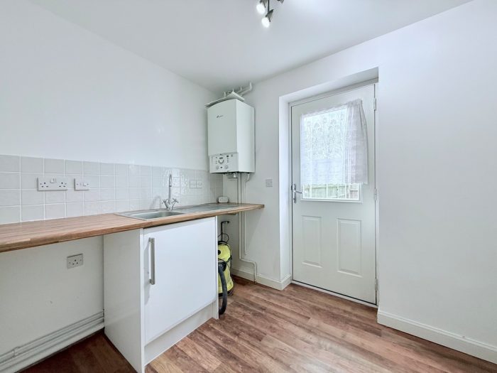 UTILITY 6' 6" x 8' 1" (1.98m x 2.46m) worktop, space and plumbing for washing machine and tumble dryer, base unit, 1 bowl sink with mixer tap, Worcester gas boiler, radiator. Door to rear garden.