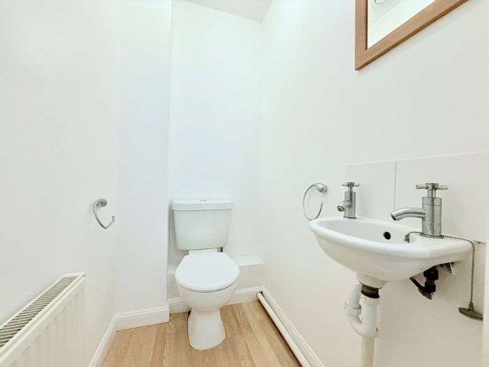 GROUNDFLOOR CLOAKROOM wc, hand wash basin, radiator, extractor fan.