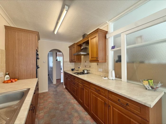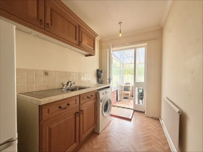 UTILITY ROOM (FORMER BEDROOM 3) 12' 11" x 6' (3.94m x 1.83m) fitted with a range of wall and base units with stainless steel drainer sink with mixer tap over; plumbing for washing machine; space for fridge/freezer; door to:
