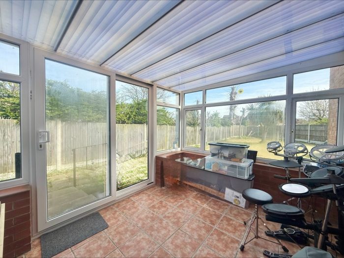 CONSERVATORY 10' 6" x 8' (3.2m x 2.44m) brick and upvc construction with a polycarbonate roof over; tiled flooring; upvc double glazed windows to the rear and side aspect; upvc sliding patio door to rear.