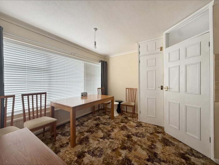 DINING ROOM 11' 5"max x 10' 2" max (3.48m x 3.1m) built-in storage cupboard; upvc double glazed window to front; door to side; open to:
