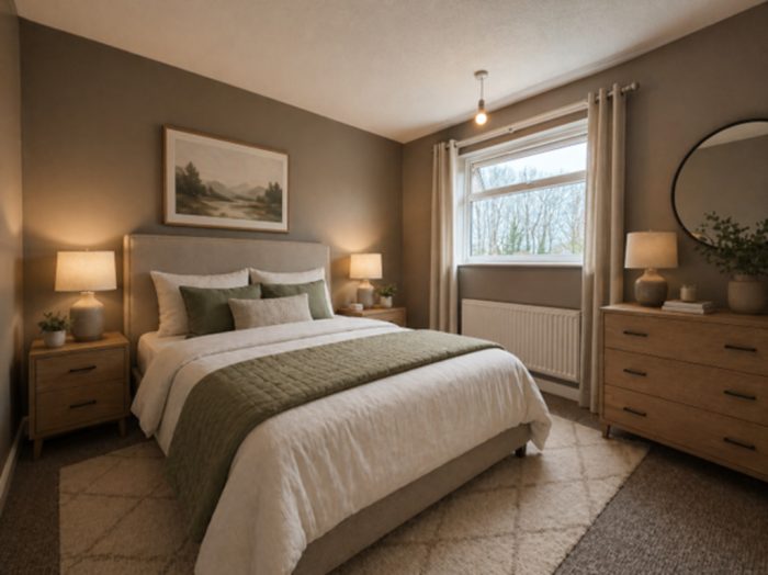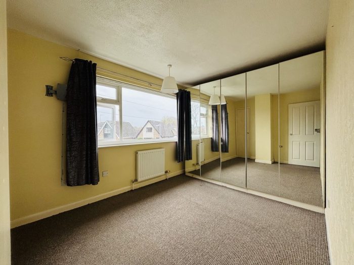 BEDROOM 1 12' x 9' (3.66m x 2.74m) large UPVC double glazed window to front, radiator, built-in storage cupboard, freestanding mirrored wardrobes (will be left).