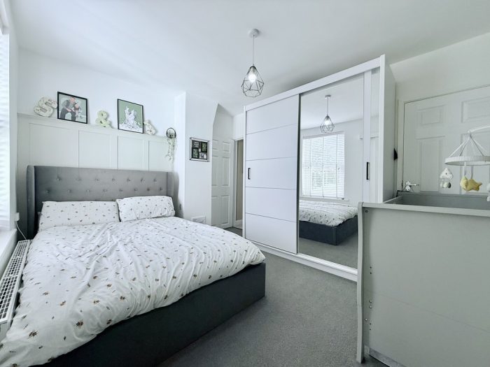 BEDROOM 2 12' 1 max " x 9' 11 plus over stairs cupboard" (3.68m x 3.02m) window to rear aspect, radiator. Sliding door to;