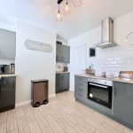 KITCHEN BREAKFAST ROOM 12' 2 max " x 9' 11 plus understairs storage" (3.71m x 3.02m) understairs storage cupboard housing the Alpha gas boiler, worktops, range of base, cupboards and drawers, built-in oven with four ring hob, 1½ bowl sink with mixer tap, space for upright fridge freezer, breakfast bar, range of wall units, light and extractor, window to rear aspect, tiled floor, radiator. Door to;