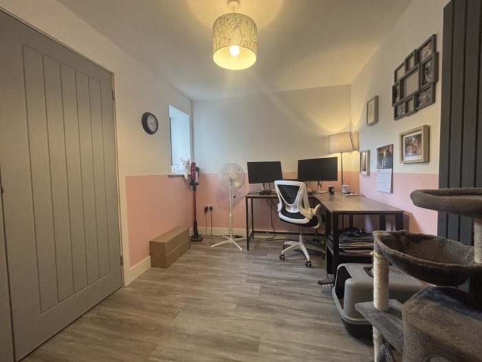 BEDROOM 2 11' x 8' (3.35m x 2.44m) smooth plastered ceiling, ceiling light, UPVC double glazed window to rear aspect, radiator, power points, wood effect laminate flooring, built-in double width wardrobe.
