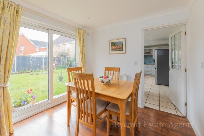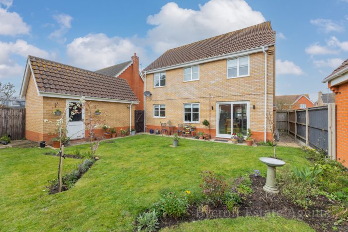 Bycroft Estate Agents are delighted to present this CHAIN FREE immaculately presented, detached, four bedroom family residence situated in this popular and sought after village location in Hopton close to shops and variety amenities. The accommodation comprises of a spacious entrance hall, downstairs wc, study, lounge, dining room, newly fitted kitchen and utility room, landing, four bedrooms with en-suite to principal and family bathroom. The property benefits from front garden, side garden, detached single garage and well presented, enclosed, south facing rear garden, gas central heating (newly installed in 2025) and double glazed windows.