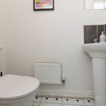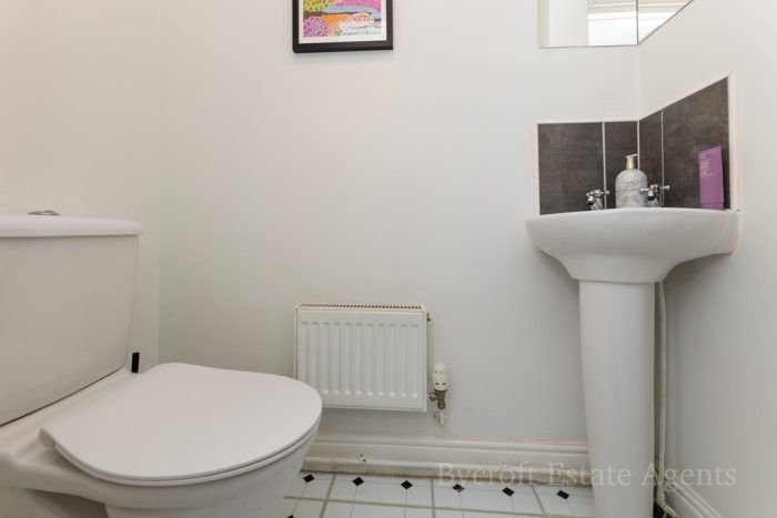 DOWNSTAIRS CLOAKROOM wc with push button cistern, corner pedestal hand wash basin, radiator, extractor fan.