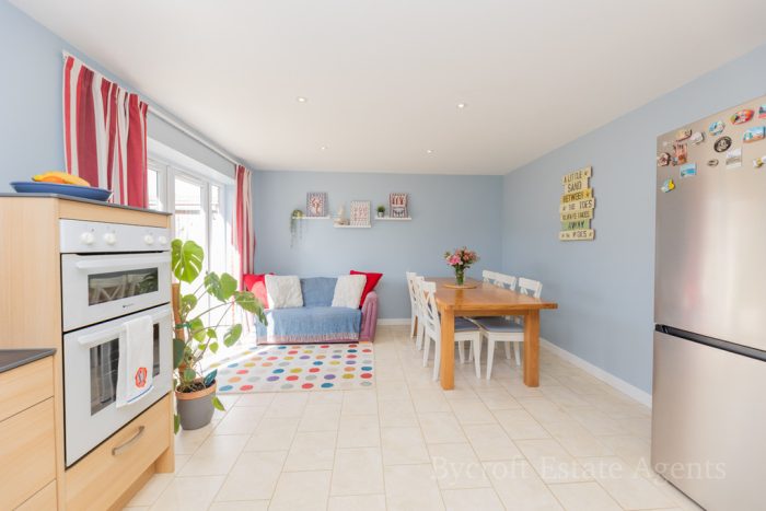 KITCHEN DINER 24' x 13' (7.32m x 3.96m) good mix of wall and base units, space for dishwasher, under counter fridge and fridge freezer, integrated double oven, 1½ sink, gas hob, extractor fan, double glazed window, double glazed double French doors with side lights to rear garden. Large space for dining area; individual underfloor heating thermostat.