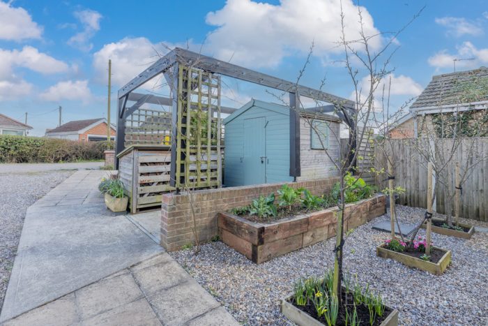 OUTSIDE To the front is large space for three vehicles, shingle driveway. Electric power point. To the rear is an enclosed garden mainly laid to lawn, a patio area, outdoor shed, greenhouse, side access.