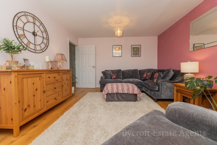 LIVING SPACE 15' x 12' (4.57m x 3.66m) UPVC double glazed bay window to front, wood burner, engineered solid wood flooring; individual underfloor heating thermostat.