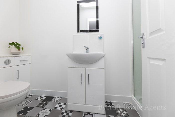 EN SUITE 9' x 4' (2.74m x 1.22m) recently refurbished comprising wc, wash basin, double walk-in shower with mains fed shower fitting.