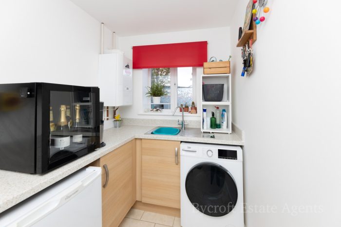 UTILITY ROOM 12' x 6' (3.66m x 1.83m) worktop, base units, space for washing machine and tumble dryer, pantry style cupboard, gas boiler supplied by propane gas cylinders, solar panel inverter housing.