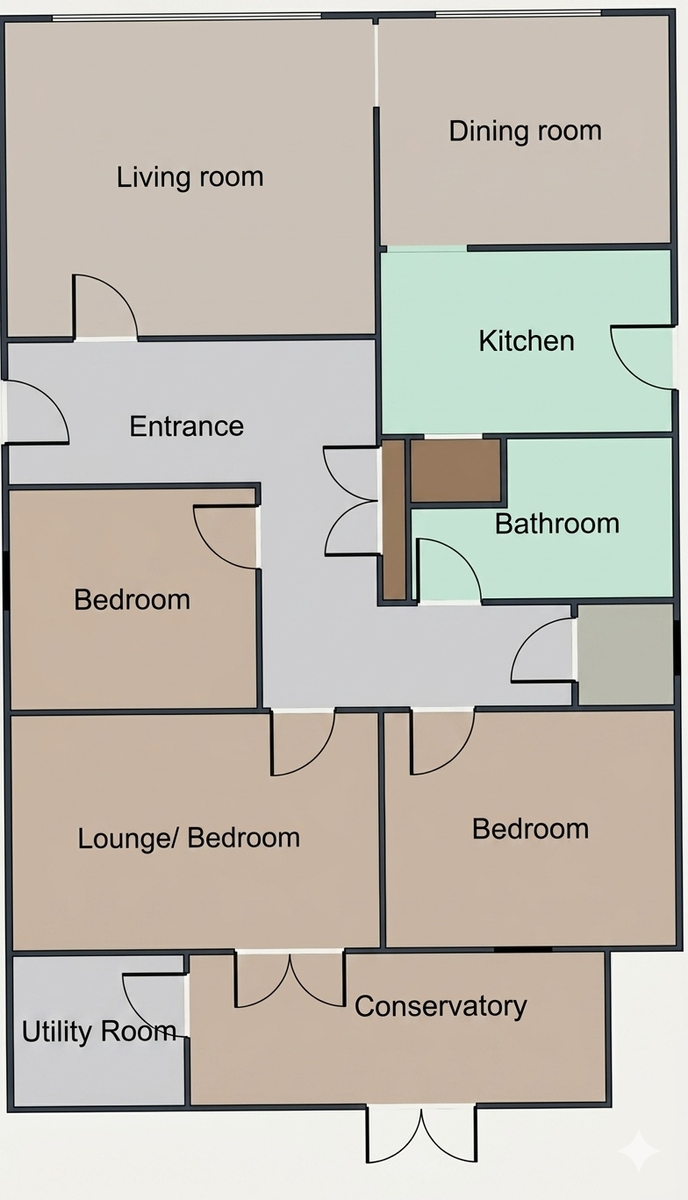 The approximate room sizes are only intended as general guidance. You must verify the dimensions carefully before ordering carpets or any built-in furniture.
