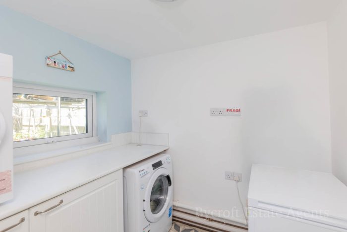 UTILITY ROOM 7' 0" x 6' 5" (2.15m x 1.98m) under counter units; space and plumbing for washing machine; space for chest freezer; space for tumble dryer; window to the rear over looking the garden.