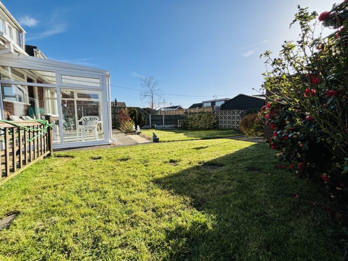 OUTSIDE To the rear of the property is an enclosed garden laid mainly to lawn, wooden shed, brick weave patio area, side access to the driveway and single garage.