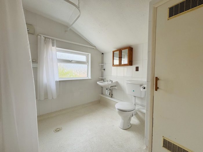 WET ROOM 8' x 8' (2.44m x 2.44m) fully tiled, shower with mains fittings, wash basin, wc, UPVC double glazed window, boiler cupboard housing gas combination boiler.
