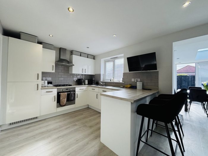 Bycroft Estate Agents are delighted to offer this immaculate detached house offering spacious accommodation comprising, entrance hall, kitchen/dining room, sun room with skylight window, living room, landing, three bedrooms, en suite bathroom to principal, family bathroom, enclosed low maintenance garden with patio area and artificial lawned area and bar area.