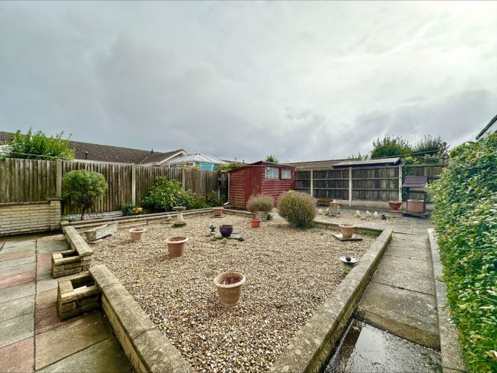 OUTSIDE To the outside front of the property is a low maintenance garden area laid mainly to shingle with paved pathway, a well proportioned driveway area provides ample off road parking and gives access to the single garage and a covered storm approach to the front door. To the outside rear is an enclosed garden laid mainly to pave and shingle for low maintenance with well stocked flower and shrub borders, timber shed, side access gate and outside tap.