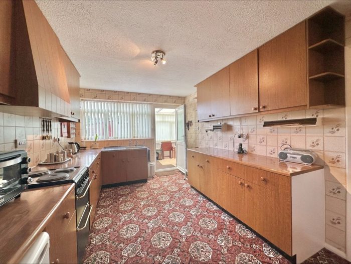 KITCHEN / DINER 23' 0" x 9' 11 max " (7.01m x 3.02m) fitted with a range of wall and base units with roll edge worksurfaces over; electric cooker point with floor mounted electric cooker; fridge freezer; inset stainless steel single drainer sink; tiled splashbacks; UPVC double glazed window to rear; door to Conservatory; dining area with UPVC double glazed window to side.